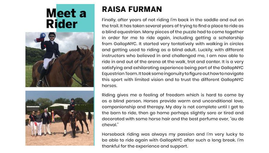 Last Chance! Join GallopNYC May 21 for the Central Park Promenade May 17 Written By Carrie Wirth More Info Donate Now Carrie Wirth